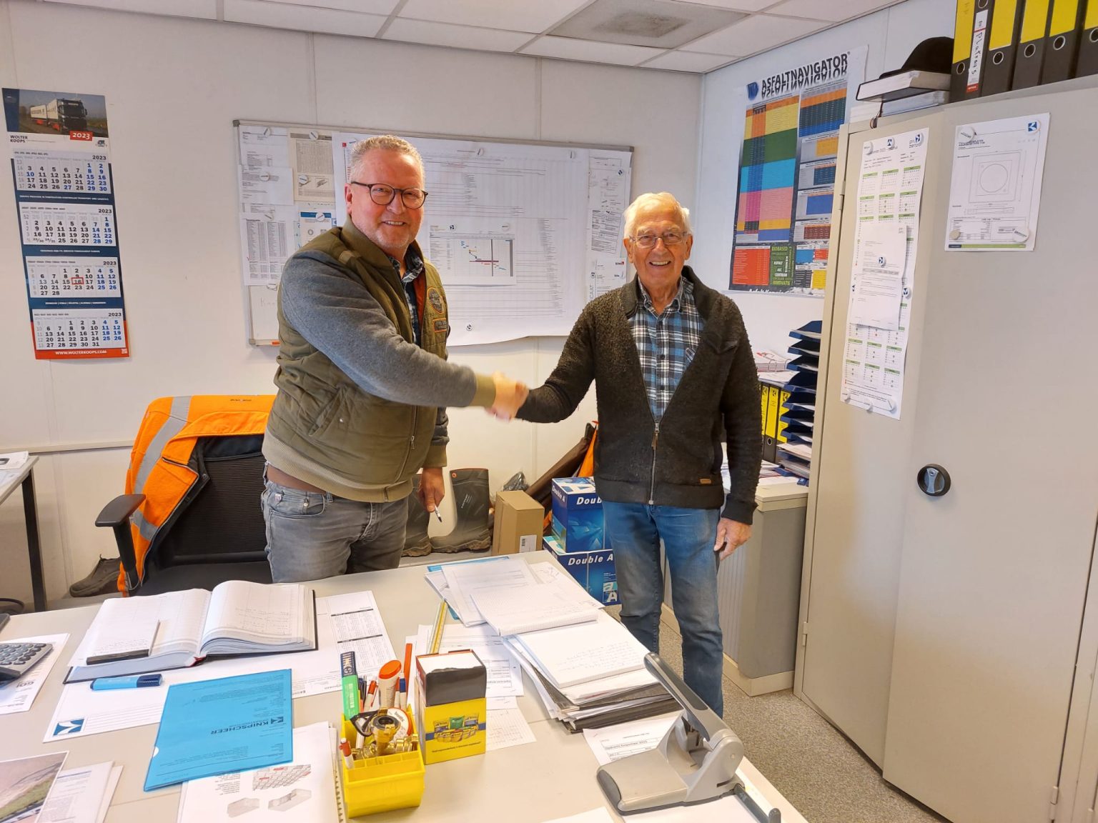 En een echte klassieke vakman: hij springt letterlijk en figuurlijk direct in het gat als dat voor het werk nodig is. Namens de huidige en de oud directie van Knipscheer Infrastructuur spreken we hier graag onze grote dank en waardering uit en willen we Karrie graag van harte feliciteren met deze mijlpaal.