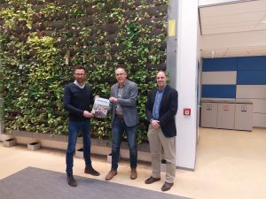 Algemeen directeur Steven Jansen overhandigd het projectboek op Hogeschool Arnhem en Nijmegen.