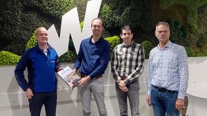 Henri de Vries, calculator/werkvoorbereider civiele betonbouw, overhandigd het Projectboek op Hogeschool Windesheim in Zwolle