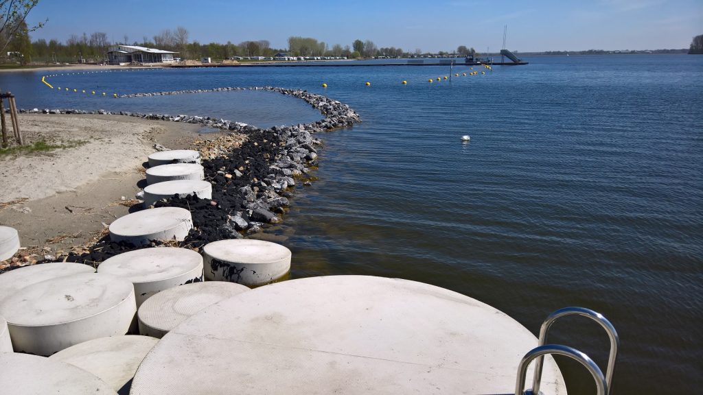 In Flevoland is een mooi en populair waterbouwkundig project gerealiseerd: de strandlocatie Bremerbaai te Biddinghuizen (Gemeente Dronte). Een bijzonder project dat geheel in de beschermingszone van het waterwinningsgebied ligt. Alle items in dit plan van pier, plein tot toiletgebouw zijn bedacht en geconstrueerd vanaf de bodem. Door dit herinrichtingsplan wordt de bestaande strandlocatie van de Bremerbergse Hoek te Biddinghuizen nieuw leven ingeblazen.