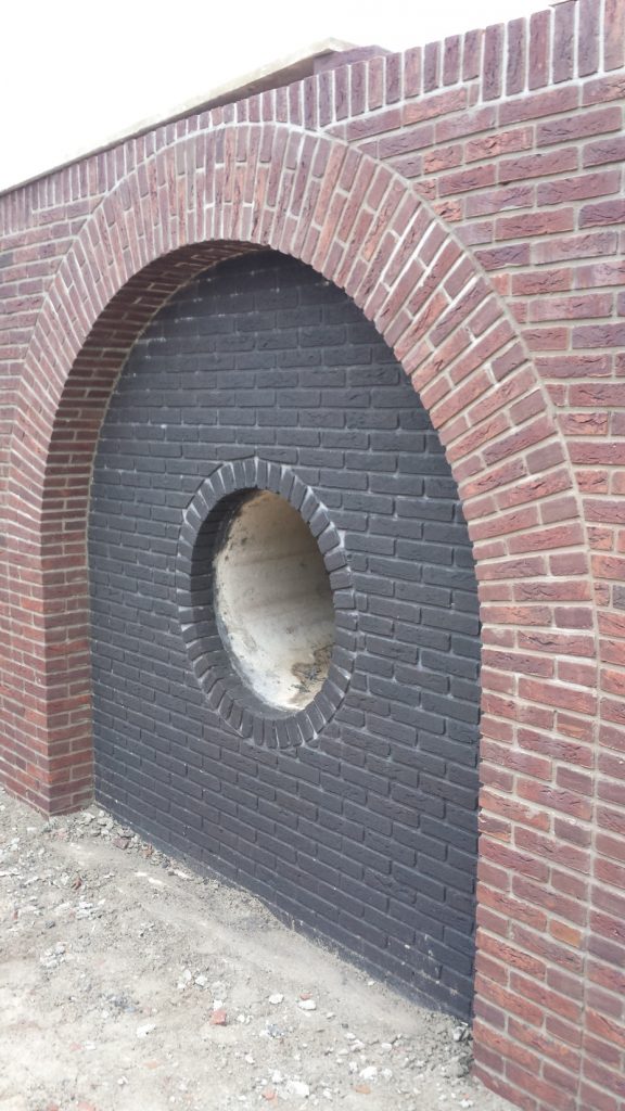 De brugduiker en kademuur bestaan uit een betonconstructie met voormetseling. Het metselwerk is voorzien van doorstrijkmortel en de ruimte tussen metselwerk en betonconstructie is volledig gevuld met voegspecie. De stenen hebben een zeer lage vochtopname (< 10%). Om intreding van vocht aan de bovenzijde te voorkomen, zijn de brugduiker en kademuur voorzien van prefab betonnen afdekelementen. Door deze detaillering is het geheel vorstbestendig en duurzaam uitgevoerd.
