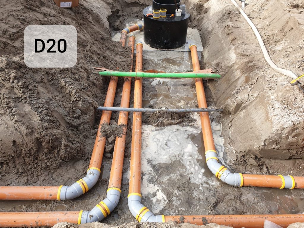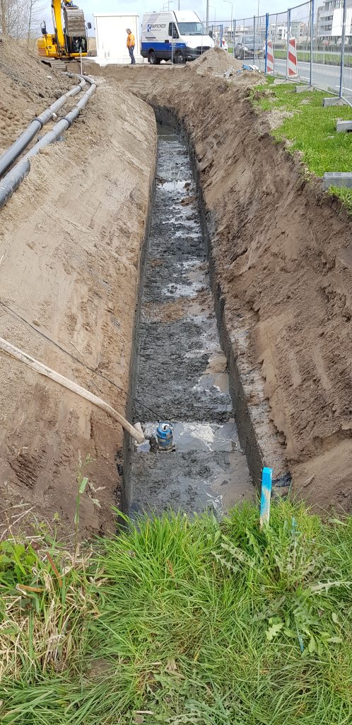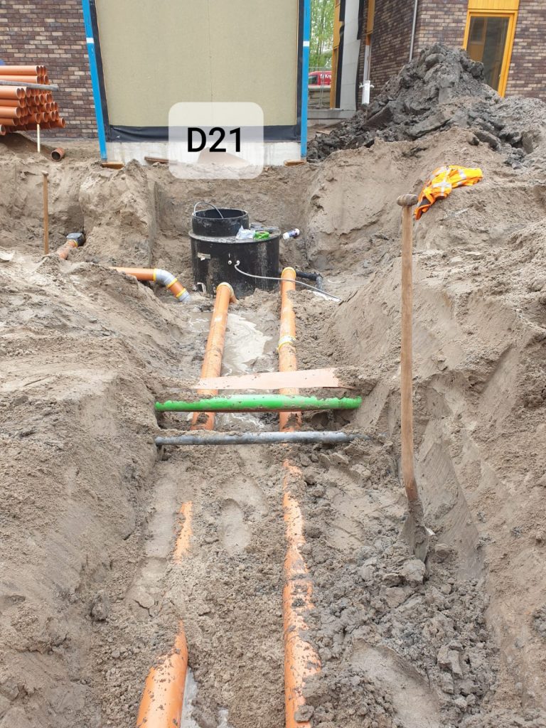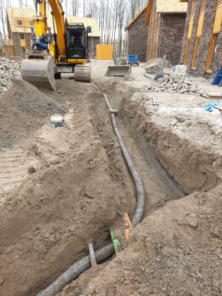 Met onze vakkundige medewerkers is het grondwerk en circa 6.000 m aan rioleringswerkzaamheden en circa 7.000 m aan drainage leidingen gerealiseerd. Evenals het leveren, plaatsen en aansluiten van circa 60 stuks vacuüm pompputten nabij de woningen. Mede vanwege de vele nutsleidingen, krappe leidingtracés en het aanwezig grondwater vergde de klus grote zorgvuldigheid.